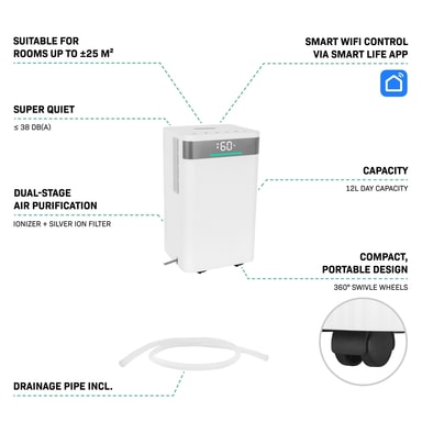 Effektiv affugtning – op til 12L/dag i rum op til 25 m²
