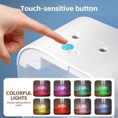 USB Dobbelt Spray Luftfugter har en 1000 ml tank, dobbelt spray, støjsvag drift og automatisk slukning. Perfekt til hjemme- og soveværelsesbrug, giver kølig tåge og forbedrer luftkvaliteten. Type-C USB-opladning for bekvemmelighed.Læs mere om produktet