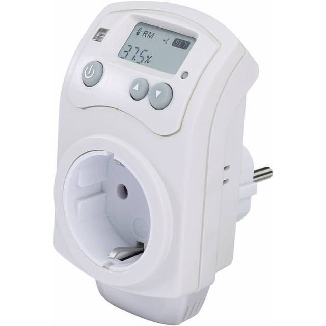 Det praktiske mellemstik giver et behageligt klima og velvære med spareeffekt. Luftfugtighedsregulatoren slår automatisk den tilsluttede luftaffugter eller luftbefugter til eller fra. På den måde undgår du, at apparatet er i brug, når det ikke er nødvendigt, og du holder alligevel luftfugtigheden på en værdi, som kan indstilles individuelt.