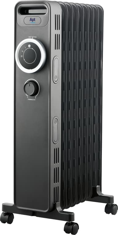 Apt olieradiatoren 73868 giver en stabil og lydløs varme med 9 ribber for effektiv rumopvarmning. Den har 3 varmeindstillinger, justerbar termostat, væltesikring og overophedningsbeskyttelse samt ledningsopbevaring for et sikkert og praktisk design.Læs mere om produktet
