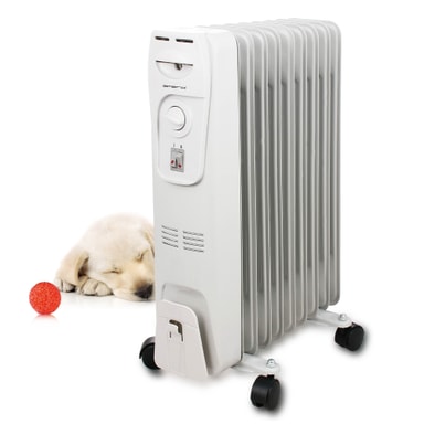 Denne olifyldte radiator er egnet til værelse på op til 30 m2. Enheden er flytbar, så du kan let transportere den rundt i dit hjem, og varme lige det værelse op du vil.