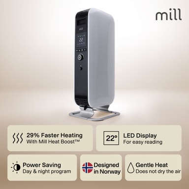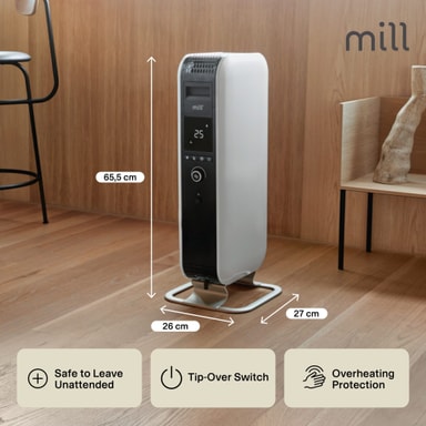 Denne olieradiator fra Mill vil give en varm og hyggelig følelse i hjemmet på kolde dage. Takket være sit rene, stilfulde udseende vil den også være en flot tilføjelse til hjemmet.Læs mere om produktet