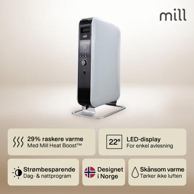 Denne olieradiator fra Mill vil give en varm og hyggelig følelse i hjemmet på kolde dage. Takket være sit rene, stilfulde udseende vil den også være en flot tilføjelse til hjemmet.Læs mere om produktet