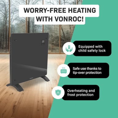 Med dagens energipriser kan vi godt forstå, at du leder efter et mere bæredygtigt alternativ. Med denne konvektorvarmer sørger VONROC for at du kan holde dig varm.