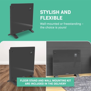 Vil du hellere montere den på væggen? Det er ikke noget problem. Vi leverer den med gulvstativer samt et monteringssæt. Vi lader valget være op til dig!