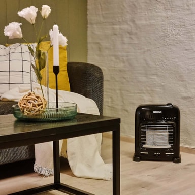Miniflame V16 er en flyttbar gassovn som raskt varmer opp rommet.