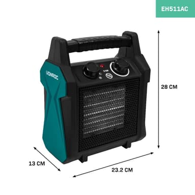 No-nonsense opvarmning med VONROC. Tag denne kompakte og lette varmeblæser med dig overalt. Tag bare fat i det store håndtag, og placer den, hvor du har brug for at øge rumtemperaturen. Takket være det keramiske element med hurtig opvarmning vil en varm brise nå dig inden for få sekunder - mens den indbyggede ventilator giver hurtig varmefordeling.