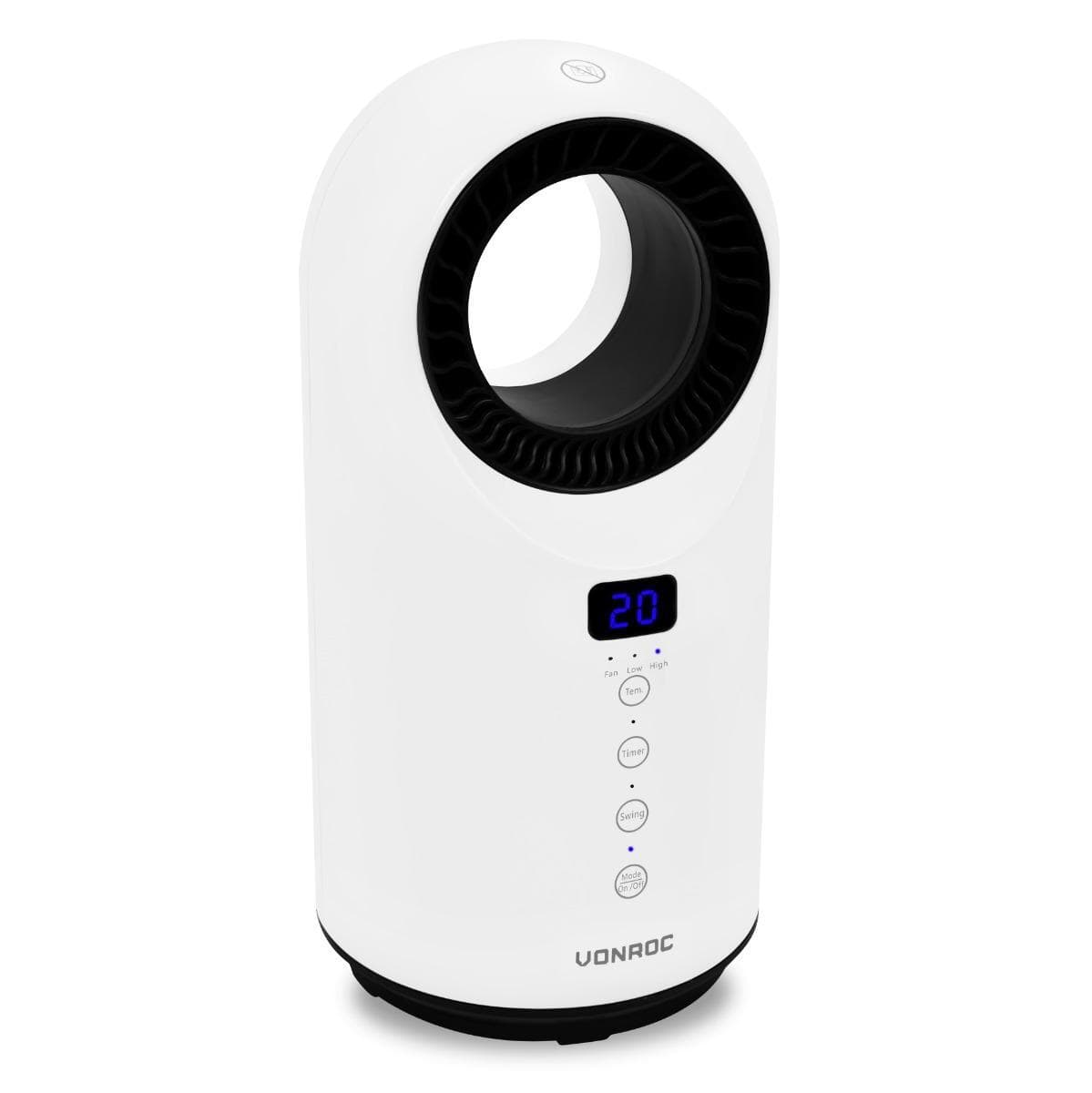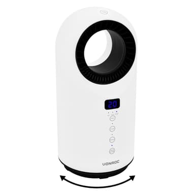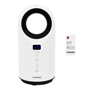 VONROC Varmeblæser - Bladløs | Ventilator - 1500W | 15m2 - keramisk - termostat | 3 indstillinger | LED | Hvid | Inkl. Fjernbetjening