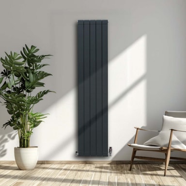 Med en slank antracitfinish fungerer disse radiatorer som et slående fokuspunkt, der forbedrer stemningen i ethvert rum med deres dristige tilstedeværelse. Deres appel går ud over æstetik, da de er omhyggeligt konstrueret til optimal ydeevne. Med robuste aluminiumspaneler, der måler 1800 mm x 75 mm, leverer de overlegen varmeydelse med større effektivitet, hvilket sikrer, at din plads forbliver hyggelig og komfortabel.