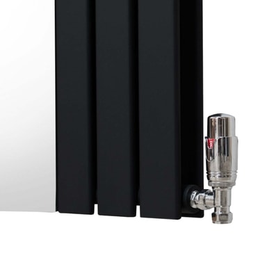 Infunder varme i dit hjem med vores banebrydende lodrette fladskærmsradiator i sort med et elegant centralt spejl og termostatisk kromventilsæt - en perfekt blanding af tidløs elegance og moderne effektivitet.