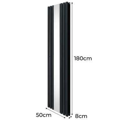 Infuser varme i dit hjem med vores banebrydende ovale panel lodrette radiator i antracitgrå med et elegant centralt spejl - en perfekt blanding af tidløs elegance og moderne effektivitet.