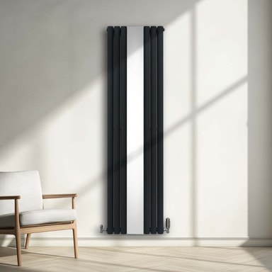 Infuser varme i dit hjem med vores banebrydende ovale panel lodrette radiator i antracitgrå med et elegant centralt spejl - en perfekt blanding af tidløs elegance og moderne effektivitet.