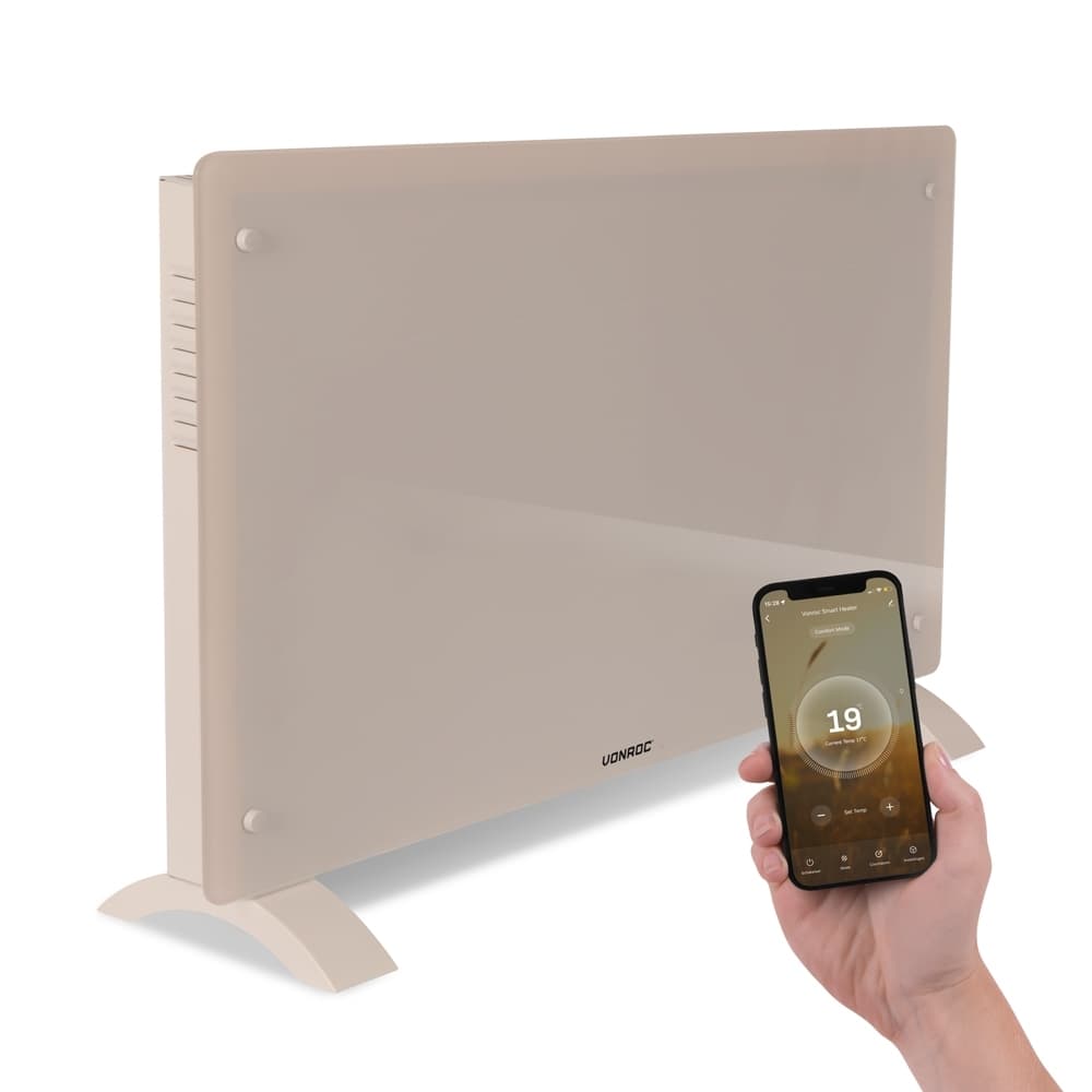VONROC Radiator - Elradiator | Glas | Luksus | 2000W | WIFI - Smartapp styring | Op til 24m² | Beige