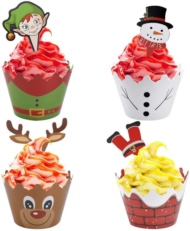 Et perfekt julesæt til kagebagning i vinter: Dette sæt indeholder 12 muffinsformer og 12 dekorative juleinspirerede figurer, såsom snemand, julerensdyr og julemanden selv, som du kan placere på kager, tærter og bagværk, som du bager ved juletider!