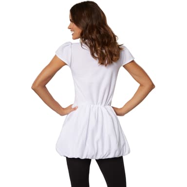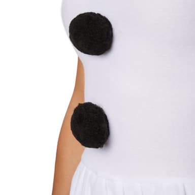 Som snekvinde vil du også være et blikfang selv i en voldsom snestorm. Den kortærmede kjole har et figurbetonet snit. Takket være den elastiske gummibånd på højde med taljen rynkes kjolen let og får mere vidde. Tre sorte kvaster placeret over hinanden gør det ud for snekvindens knapper og giver kostumet dets karakteristiske kendetegn, materiale: 100 % polyester.
