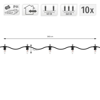 Lyskæde 3,6 m med 10 pærer Varm hvid flammeeffektLæs mere om produktet