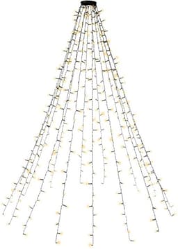 med timer og hukommelsesfunktion, 8 lysindstillinger, 24 V ekstern transformer, varm hvid (3000 K), til indendørs og udendørs brug (IP44)Förpackning: Retail BoxLyskæden med ring er velegnet som belysning til et juletræ på 1,40-1,75 m.Velegnet som steLæs mere om produktet