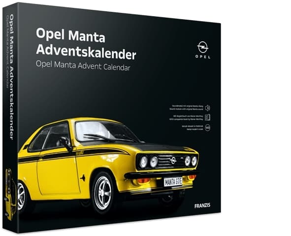 Adventskalender med konstruktionssæt af en Opel Manta i skala 1/43. 24 luger, der gør ventetiden til juleaften hurtigere end en, du kan sige ordet nostalgi!PS! Produktteksten er maskineoversat fra norsk.