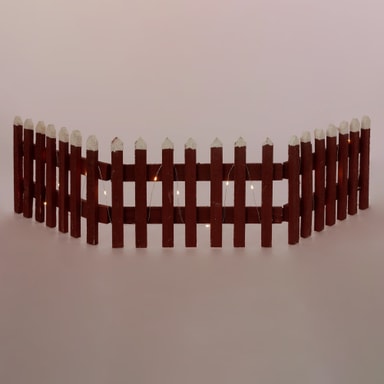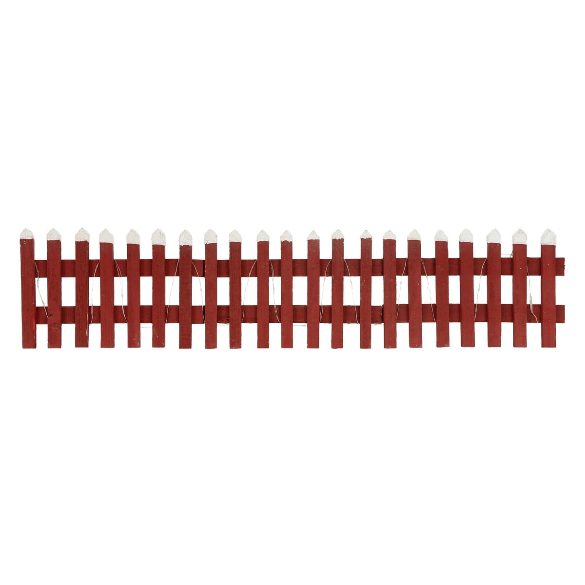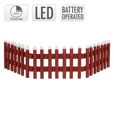 ECD Germany Deco træhegn med LED i rød, 90x21 cm, batteridrevet, timer, mini havehegn oplyst, mini lamelhegn, juletræshegnLæs mere om produktet