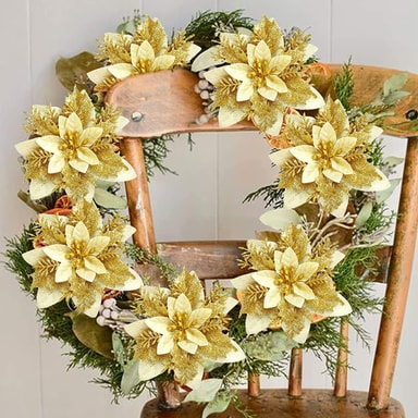 Mångsidig juldekoration: Konstgjorda blommor är en vacker juldekoration till kransar, julgran, bordsdekorationer, paket och mycket mer.