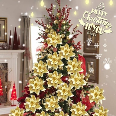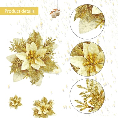 Hållbara och återanvändbara: Dessa julblommor är gjorda av högkvalitativt silvrigt glittrande plastmaterial. De är tåliga och kan användas om och om igen.