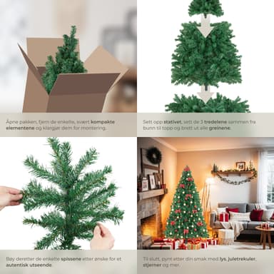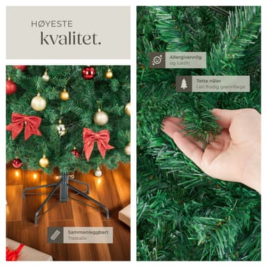 Men ikke kun dets festlige look overbeviser - også funktionaliteten af det kunstige juletræ er et højdepunkt. Den stabile træfod af pulverlakeret stål er let sammenklappelig og sikrer i kombination med de skridsikre plastkapper en sikker stand. Den simple stikmekanisme muliggør en ubesværet opsætning på ingen tid,og de bøjelige grene kan let formes. Så er juletræet hurtigt klar til pyntning og bliver det strålende midtpunkt i din juledekoration.