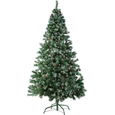 Det tætte nåleklæde i dyb grøn farve giver sammen med koglerne et særdeles realistisk udseende. De bøjelige grene kan formes efter ønske, og de mange hundrede spidser er kunstfærdigt sneet for det særlige touch. Resultatet er et forbløffende ægte juletræslook, der udstråler atmosfæren af en vinterskov. Den robuste, pulverlakerede foldbare metalfod med skridsikre gulvbeskyttere sikrer altid en stabil stand – selv ved rigelig dekoration.