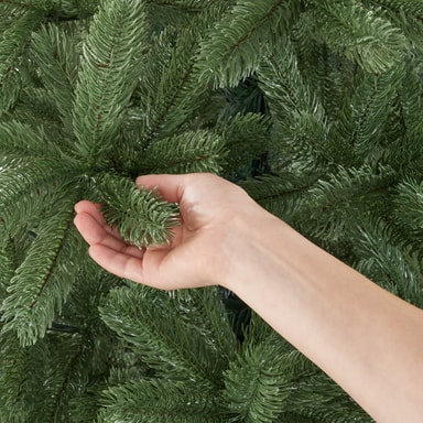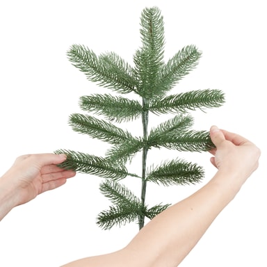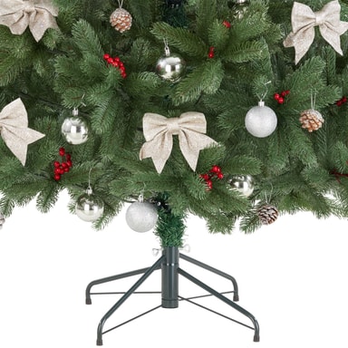 Takket være den robuste stander af pulverlakeret stål tilbyder det kunstige juletræ sikrer stabilitet, selv når grenene er fuldt dekoreret. Plastikkapperne på fødderne forhindrer ridser på sarte gulve og sikrer en sikker stand på enhver overflade. Særligt praktisk: Stiksystemet muliggør en nem opsætning af træet med kun få håndgreb, uden at der kræves ekstra værktøj. Derefter kan du efter eget ønske bøje grenene til og forme dem, og så er det klar til at blive pyntet.