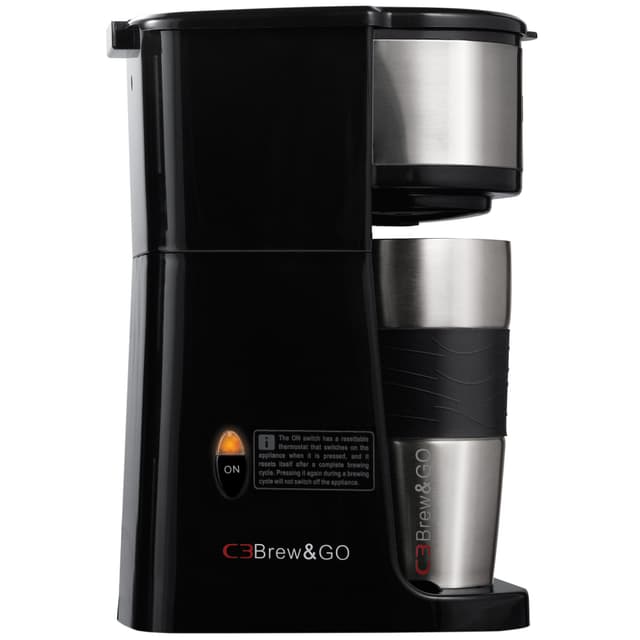 Den stilfulde C3 Brew&GO kaffemaskine 30-10612 brygger kaffe direkte i en termokande, så kaffen forbliver varm i længere tid. Bryggetiden for 425 ml kaffe er kun 3,5 minutter, så du kan nyde kaffe på farten på selv de travleste morgener.