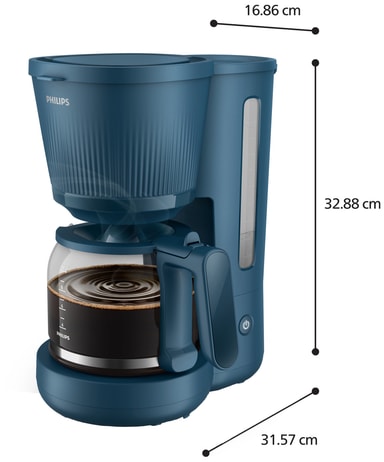 Start din morgen med fantastisk kaffe, lavet med Philips 3000 Series kaffemaskinen HD7411/70. Den brygger 1,25 liter (omkring 10 kopper) kaffe ad gangen. Auto-sluk funktionen forhindrer overophedning, og den automatiske drypstop-funktion forhindrer spild.
