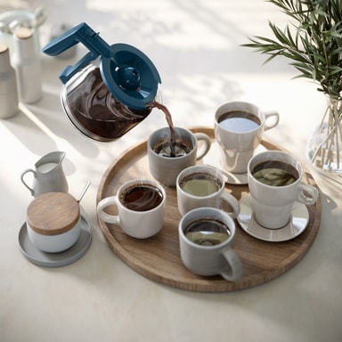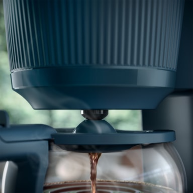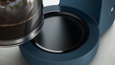 Kaffemaskinen aktiverer drypstop-funktionen, når du fjerner glaskanden for at hælde en kop kaffe - uden risiko for spild.