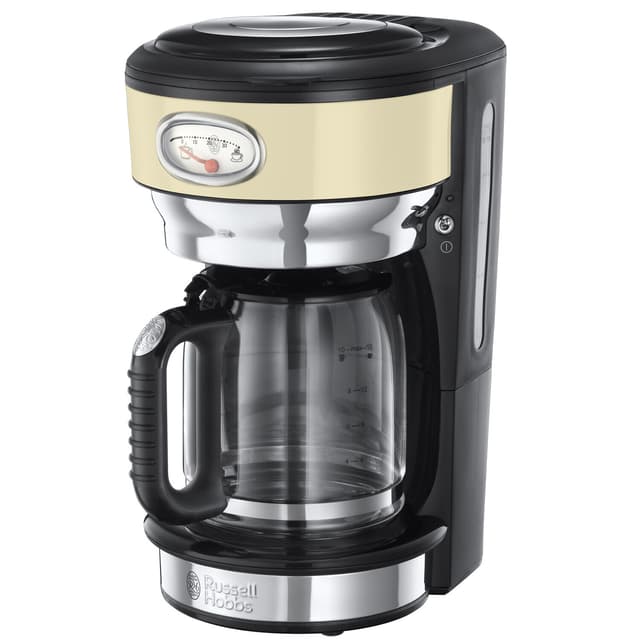 Med Russell Hobbs Retro kaffemaskinen kan du tilberede en hel kande kaffe til at få dig igennem din morgen. Kaffemaskinens design er inspireret af vintage maskiner fra 1950erne og har en praktisk bryggestatusmåler, så du kan følge med i bryggeprocessen og den resterende holde-varm tid. Der medfølger en elegant glaskaraffel med 1,25 liters kapacitet, hvilket svarer til 10 kopper kaffe.