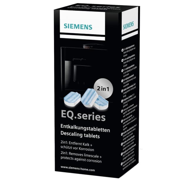 Disse afkalkningstabletter er optimerede til en automatisk afkalkningsproces og passer til Siemens Espresso maskiner. En pakke indeholder 3 stk 2-i-1 tabletter.