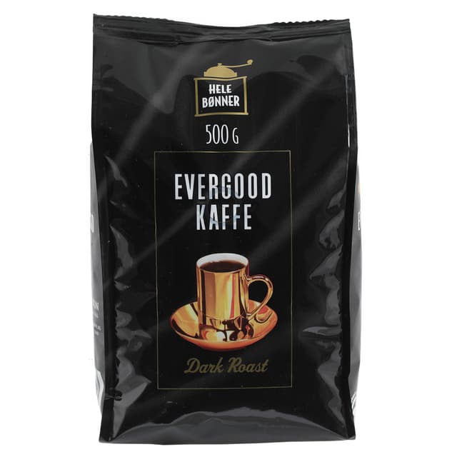• Evergood Dark Roast hele kaffebønner 500 g