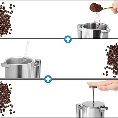 Alsidige muligheder: Lås op for en verden af brygningsmuligheder med denne alsidige stempelkande. Ikke alene er den fremragende til at lave rig, smagfuld kaffe, men den fungerer også som en mælkeskummer og teinfuser. Lav cremede lattes, cappuccinoer eller skum blot mælk til dine foretrukne varme drikke. Bryg løs te med lethed, og nyd den fulde smag og aroma af dine yndlingsblandinger. Dette multifunktionelle apparat er perfekt til hjemmebaristaer og teelskere, der sætter pris på bekvemmelighed og kvalitet. Eksperimenter med forskellige brygningsmetoder og ingredienser for at skabe dine signaturdrikke. Fra morgenkaffe til eftermiddagste er denne stempelkande din foretrukne bryggeledsager.