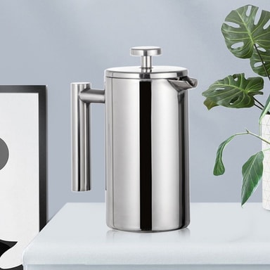 Premium stål: Denne stempelkande er fremstillet af højkvalitets 304 rustfrit stål og er bygget til at holde. Konstruktionen i rustfrit stål sikrer, at din kaffe eller te forbliver ren og ubesmittet af uønskede smagsstoffer eller lugte. Materialet er modstandsdygtigt over for rust og korrosion, hvilket gør det til et pålideligt valg til daglig brug. Det slanke, moderne design tilføjer et strejf af elegance til ethvert køkken eller kaffebar. Det robuste håndtag og det ergonomiske design giver et behageligt greb og nem hældning. Invester i en stempelkande, der ikke kun ser godt ud, men også leverer enestående ydeevne i mange år fremover. Nyd roen ved at vide, at du bruger et sikkert og pålideligt bryggeværktøj.