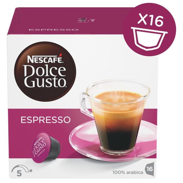 Kasse med 16 stk. Nescafè Dolce Gusto Espresso Decaf kapsler.Læs mere om produktet