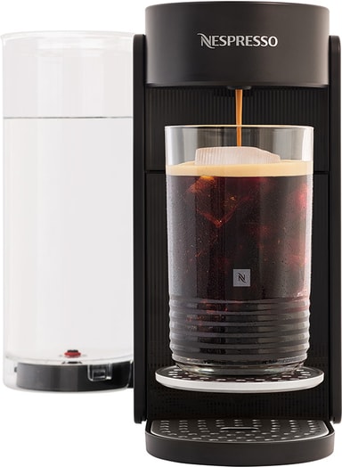 Nespresso Vertuo Up Bundle kapselmaskinen SNV650BLK2END1 leveres med en 1,4-liters vandtank, varmer op på 3 sekunder og slukker automatisk efter 2 minutter. Den kan brygge både varme og kolde drikke og er kompatibel med Nespresso Smart App.Læs mere om produktet
