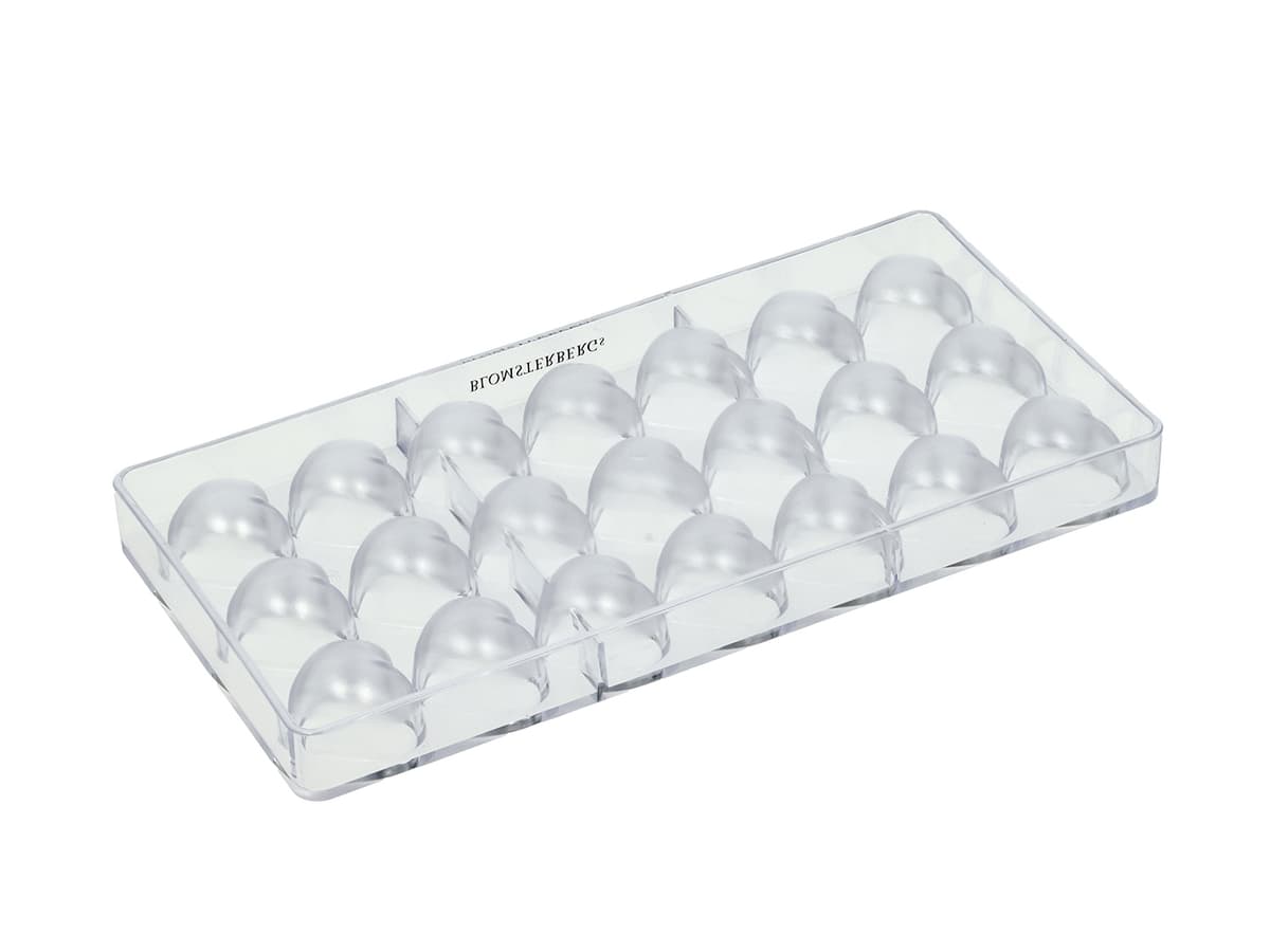 27,5 x 13,5 x 2,4 cm Formen tåler ikke fryser eller ovn, og er ikke velegnet til opvaskemaskine. Rengør i stedet formen i varmt vand uden brug af sæbe, for at undgå at chokoladen hænger fast. Tør efter med viskestykke og derefter med vat for at sikre, at alle rester bliver fjernet fra rillerne. Poler evt. også formen med vat før brug. Inden chokoladen sættes til afkøling, skrabes overfladen ren, hvilket gør det nemmere at få chokoladen ud af formene. Når chokoladen er helt stivnet, vendes formen ud i et rent viskestykke, hvor der bankes let mod et bord. Professionel chokoladeform i hård plast til fremstilling af hjemmelavede, støbte chokolader. Det er vigtigt, når du anvender ægte chokolade, at den altid tempereres præcist. Hvis den ikke tempereres korrekt, vil det ikke lykkes at at få de støbte chokolader ud af formen.