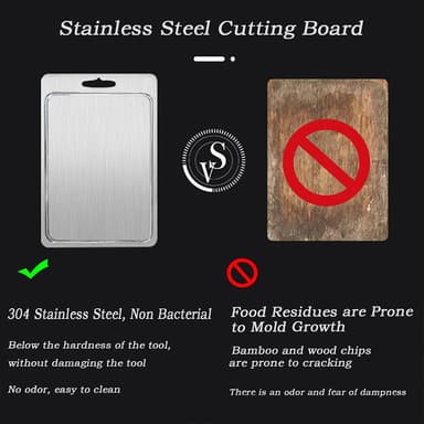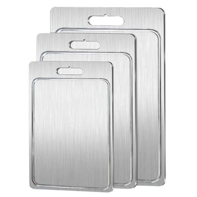 Opgrader dit køkken med dette dobbeltsidede skærebræt i rustfrit stål. Det er lavet af førsteklasses fødevaregodkendt 304 rustfrit stål, der sikrer en hygiejnisk og antibakteriel overflade til madlavning.Læs mere om produktet