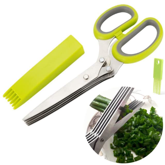 Urtesaks med solid konstruktion, 5 skarpe blade og et ergonomisk håndtag, denne saks river og skærer nemt urter og grøntsager. Leveres med en lille børste, der fjerner rester med blot et par fejninger.