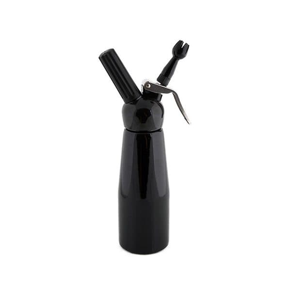 Beholde i ppoleret aluminium med hoved i plast. Lav fødeskum hurtigt og enkelt, uden at piske! Du fylder den bare med almindelig, upisket fløde, og derefter ordner patronen resten. For når man trykker fløden ud, bliver den drevet ud af gassen i patronen, og bliver dermed lige så luftig som pisket flødeskum. Vældig smidigt hvis men har dårligt med tid, for eksempel.