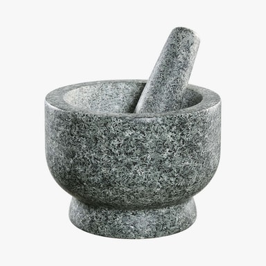 GOLIATH morteren i granit fra Cilio tjener dig godt. Hakkede urter, hvidløg, havsalt og meget mere er ingen sag. Med en diameter på 18,5cm kan den holde en god mængde gris og dens solide vægt gør den stabil, når støderen udfører sit arbejde. Den tykvæggede granit kan tage meget - olier og frugtsyrer vil ikke skade den.