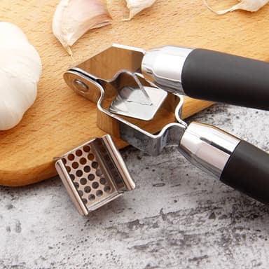 Alsidigt køkkenredskab: Dette værktøj er mere end blot en hvidløgspresser, det er også perfekt til at knuse ingefær, udvinde saft fra citroner og endda håndtere chilipeber. Dens multifunktionalitet gør den til en værdifuld tilføjelse til ethvert køkken.