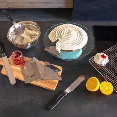 Med køkkensættet i høj kvalitet kan du bage, dekorere, pynte og smøre glasur på ikke kun til kager, men også til bagværk, tærter og lignende.