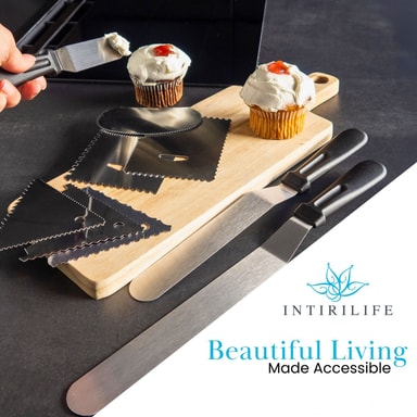Intirilife 9-delt sæt i rustfrit stål med køkkenskraber og kagespatel