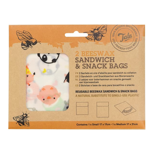 2 Bivoks Sandwichposer, genanvendelige og 100% naturlige og en erstatning for engangsplast.Brug den i stedet for traditionelle plastposer, plastfolie og aluminiumsfolie til opbevaring af sandwich, brød, frugt, grøntsager og ost.