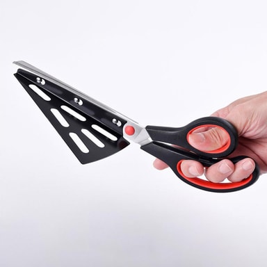 Praktisk pizzaskæring: Skær nemt igennem din pizza med vores 2-i-1 aftagelige pizzasaks i rustfrit stål. Saksen er specielt designet til at give et rent snit hver gang, hvilket gør pizzadeling meget hurtig og glat. Den aftagelige spatel er praktisk til at samle de udskårne pizzastykker op.