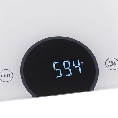 PÅ grund af den unikke, hvide farve ser vægten smuk ud i alle køkkener. Vægten anvders gi af et højkvalitativt LED-dsisplay. Som resultat har læsningen hæj kontrast og er ekstremt tydelig.