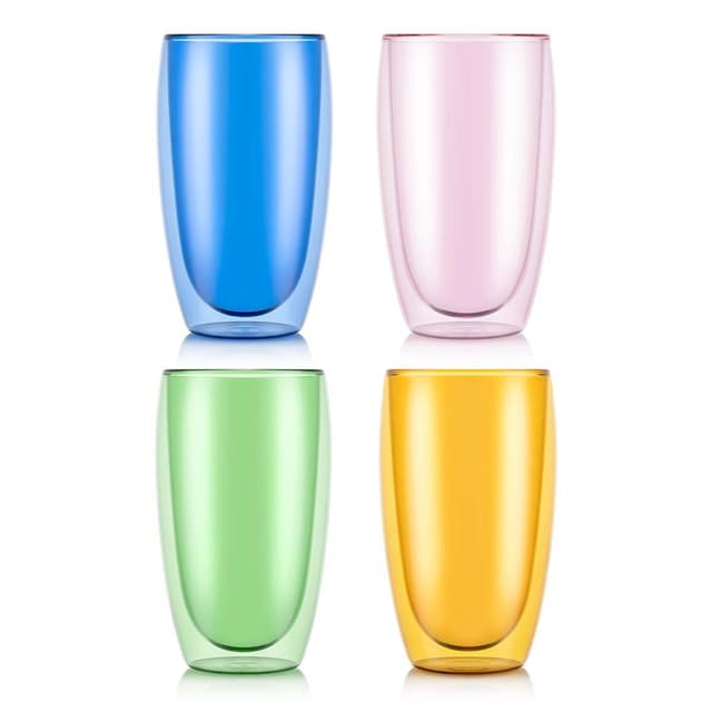 Det betyder, at du ikke brænder fingrene, når du tager om en varm kop kaffe, og at der ikke dannes kondens, så der er ikke behov for en bordskåner under glasset. Disse trofaste drikkeglas er lette og behagelige at holde og giver utallige serveringsmuligheder, fra kaffe, te og kakao til kold øl, sodavand og cocktails. Så du behøver kun at købe én type glas til dit hjem!